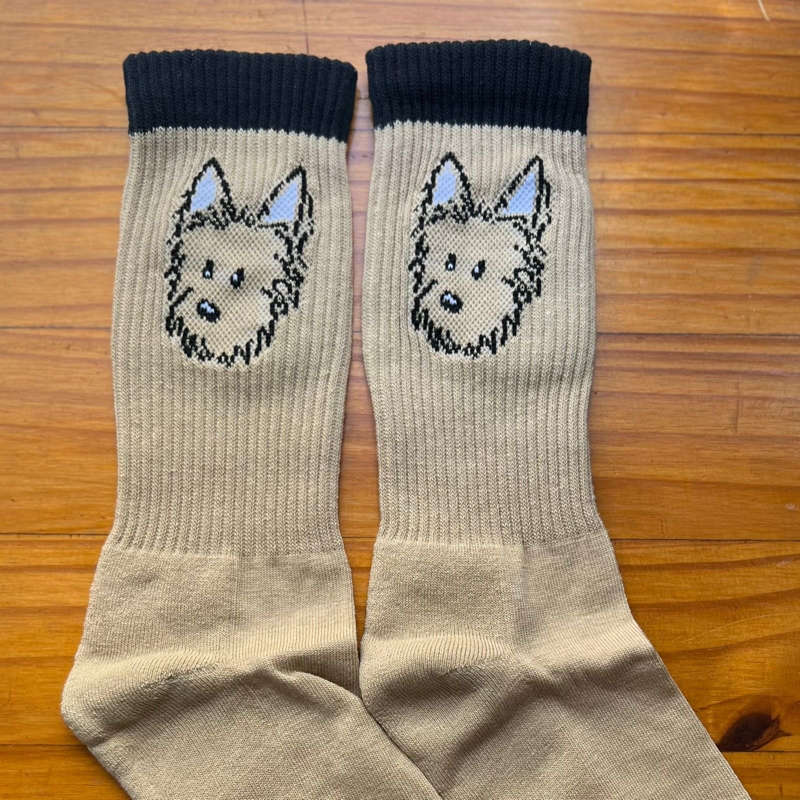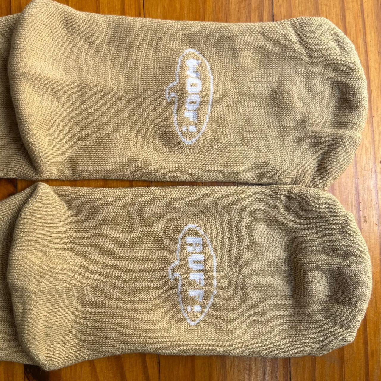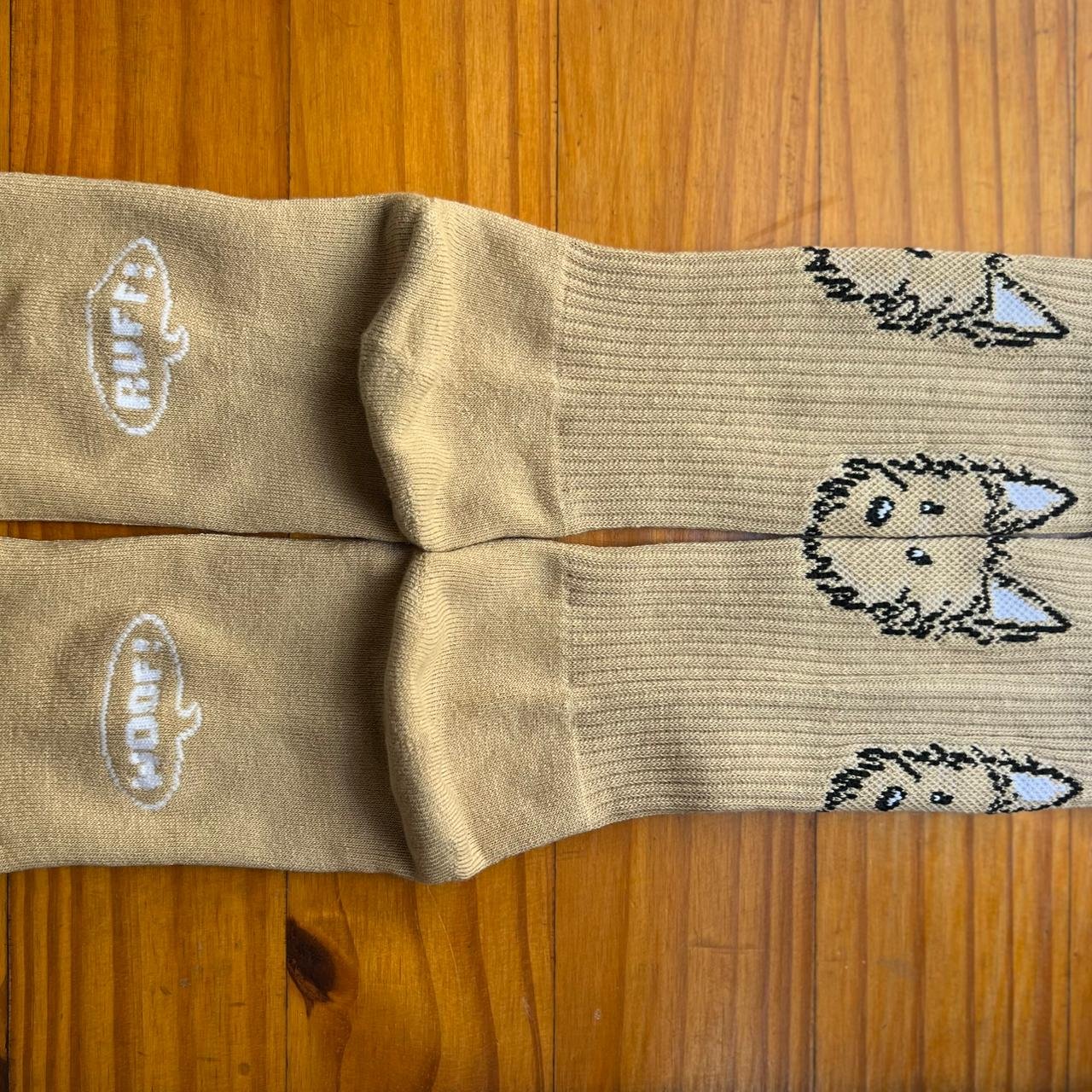 Com estampa exclusiva do rostinho dela e balões nas solas com as frases “Woof!” e “Ruff!”, essa meia é uma homenagem ao seu latido desconfiado e resmungo inconfundível.