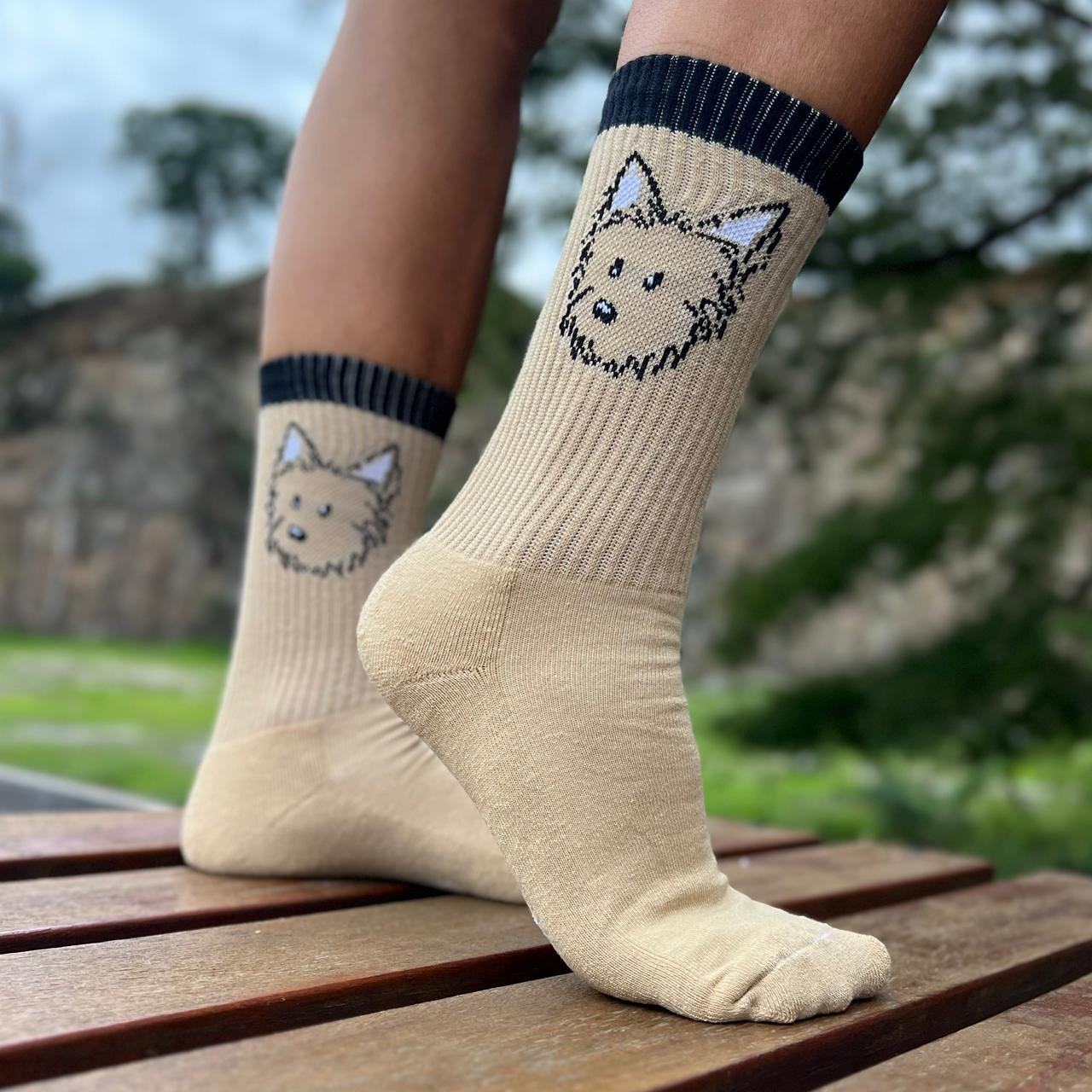 Inspirada na mascote aventureira da Vandisseia, a meia Kinki carrega o carisma e a personalidade única da nossa companheira de estrada.